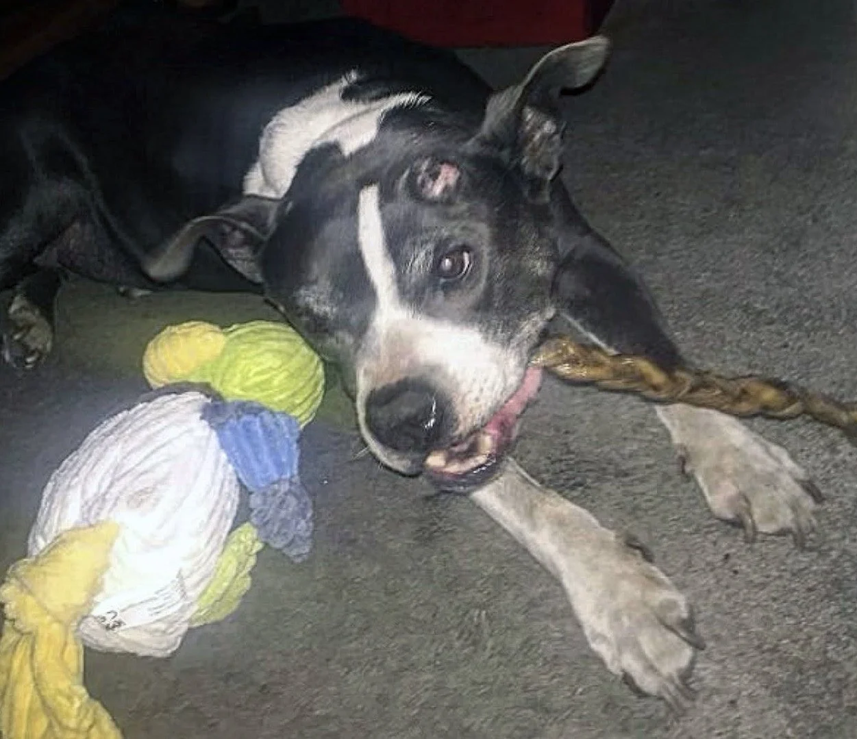 Gizmo was pulled from the shelter and placed in the care of a close, trusted friend of his dad. Our volunteer drove him there, and we offered our condolences and continued to provide medical care, food and supplies as Gizmo transitioned into his new home. His tumors had been bothering him a bit so he was on meds to help with the itchiness and prevent infection. Despite his cancer progressing and all that he had been through, Gizmo was a happy boy and was in good spirits.