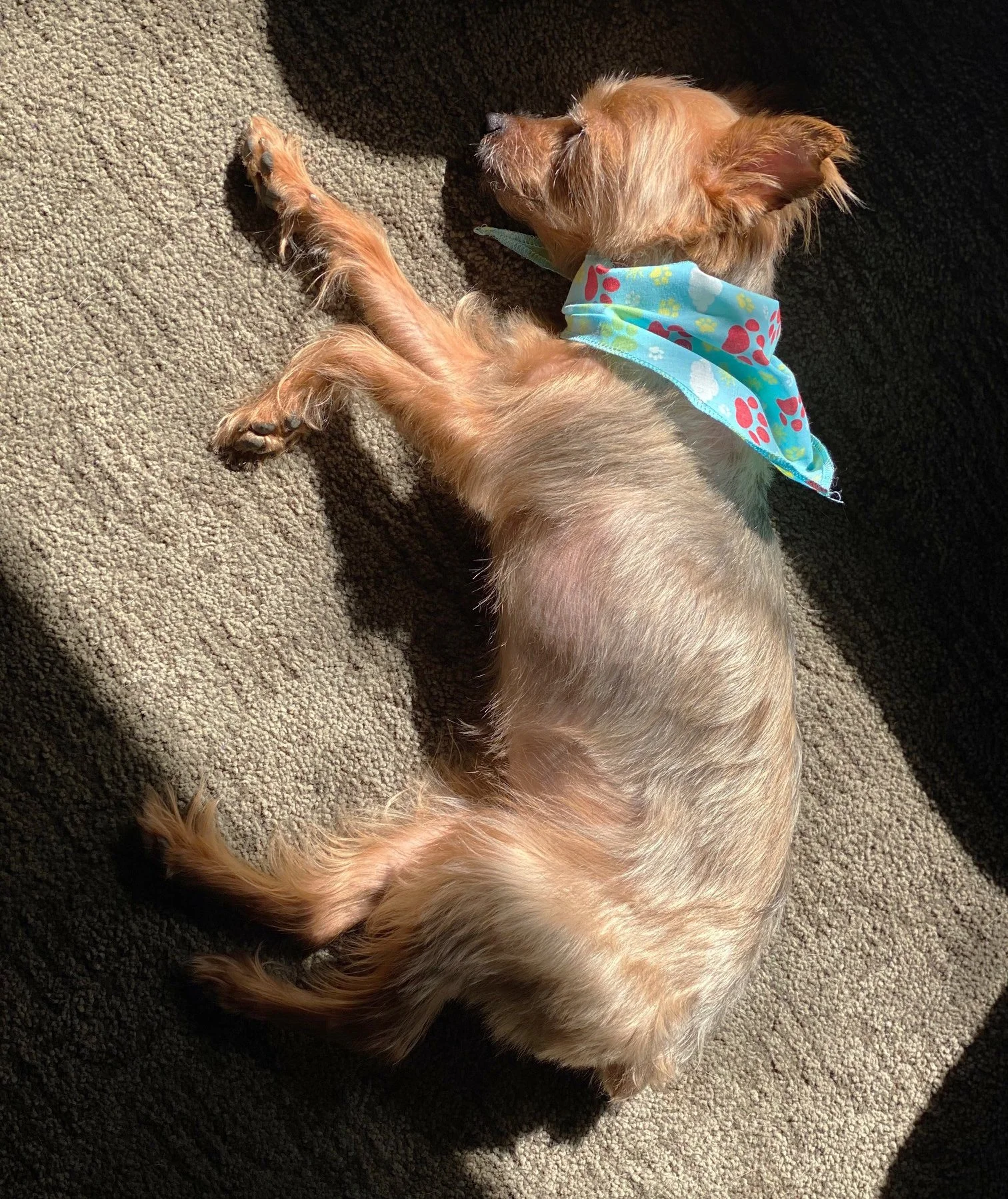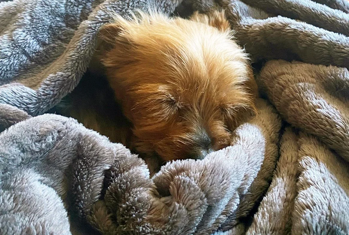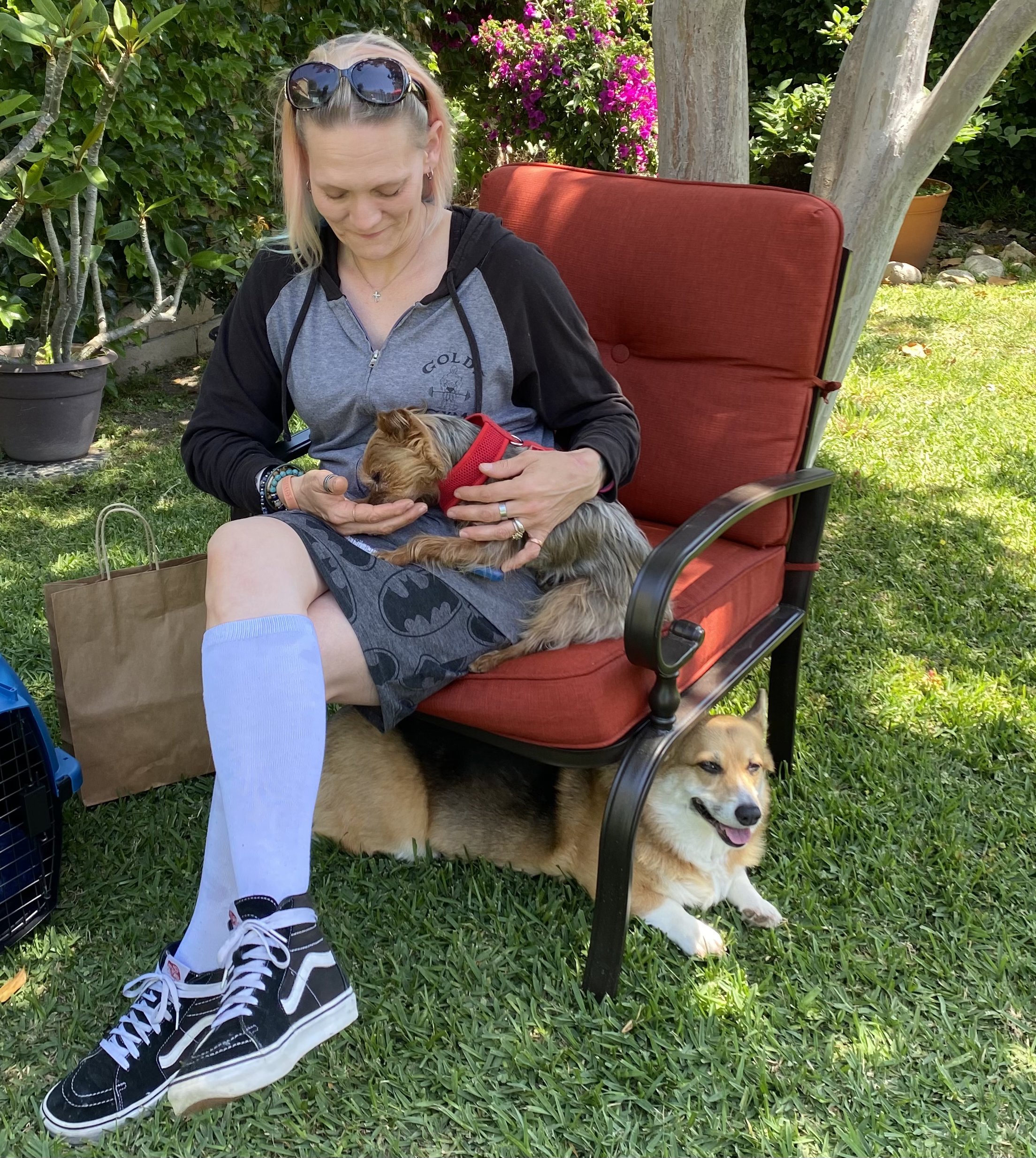 We're so happy to report that our little Luna bear has found her forever home! Luna has been through a lot in her short life, and now she hangs out at the beach all the time and goes to work with her new mom. She is also slowly working through her fear of men by getting to know her mom's male friends.