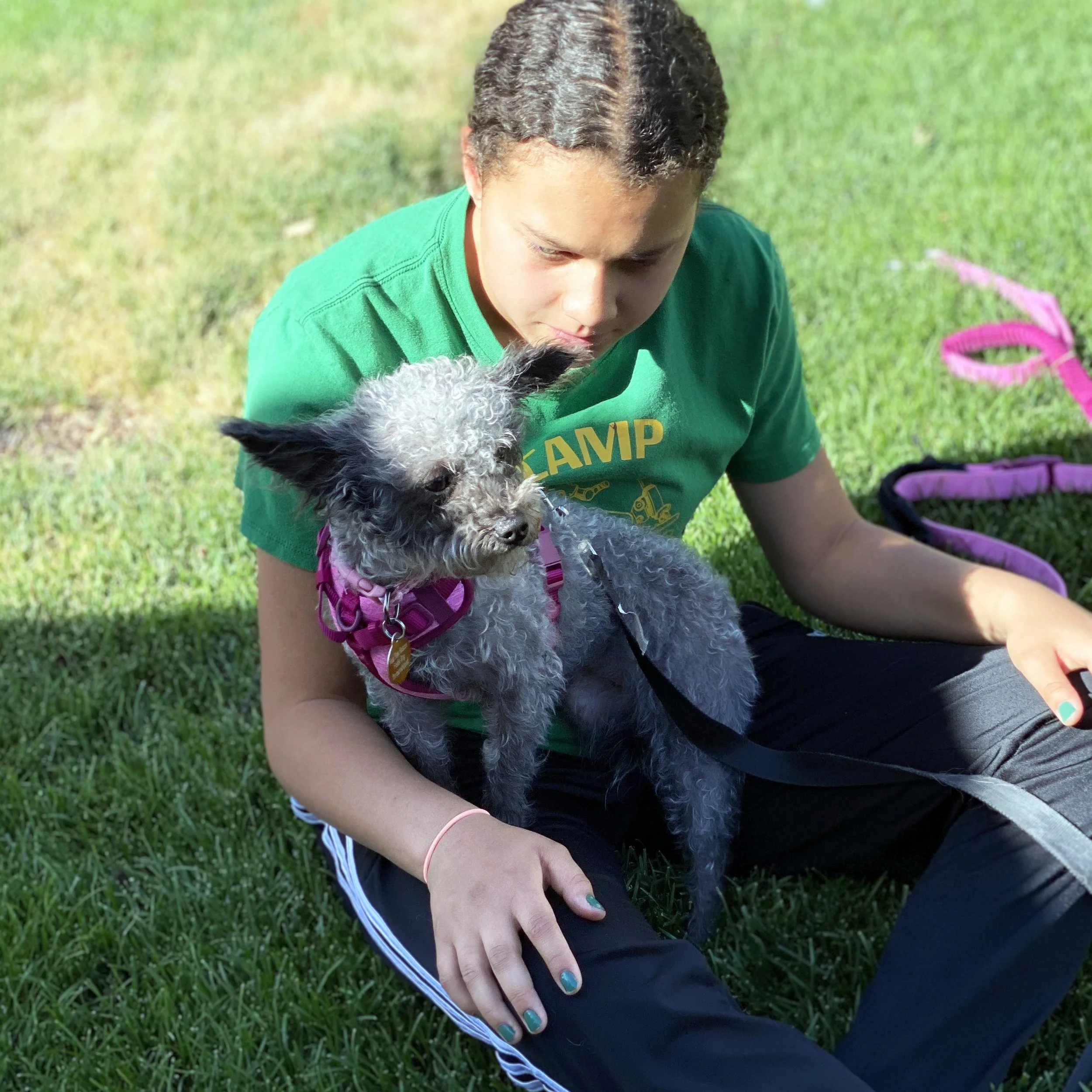 Pepper went from living in a tent on the street in the desert to being adopted to an amazing home where she now has 3 human sisters, and several fur siblings! She and her brother Salt were so terrified when they came into rescue, but now they are both thriving in their forever homes! We love watching dogs blossom!