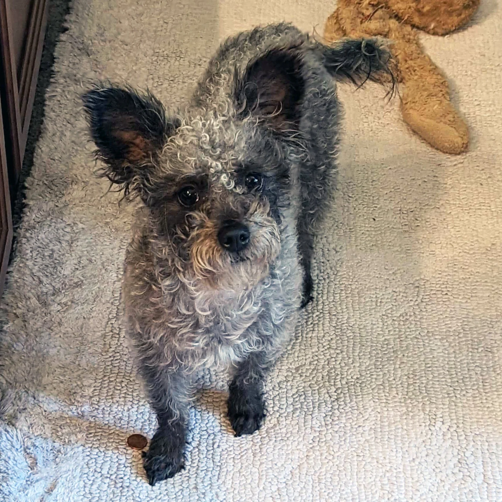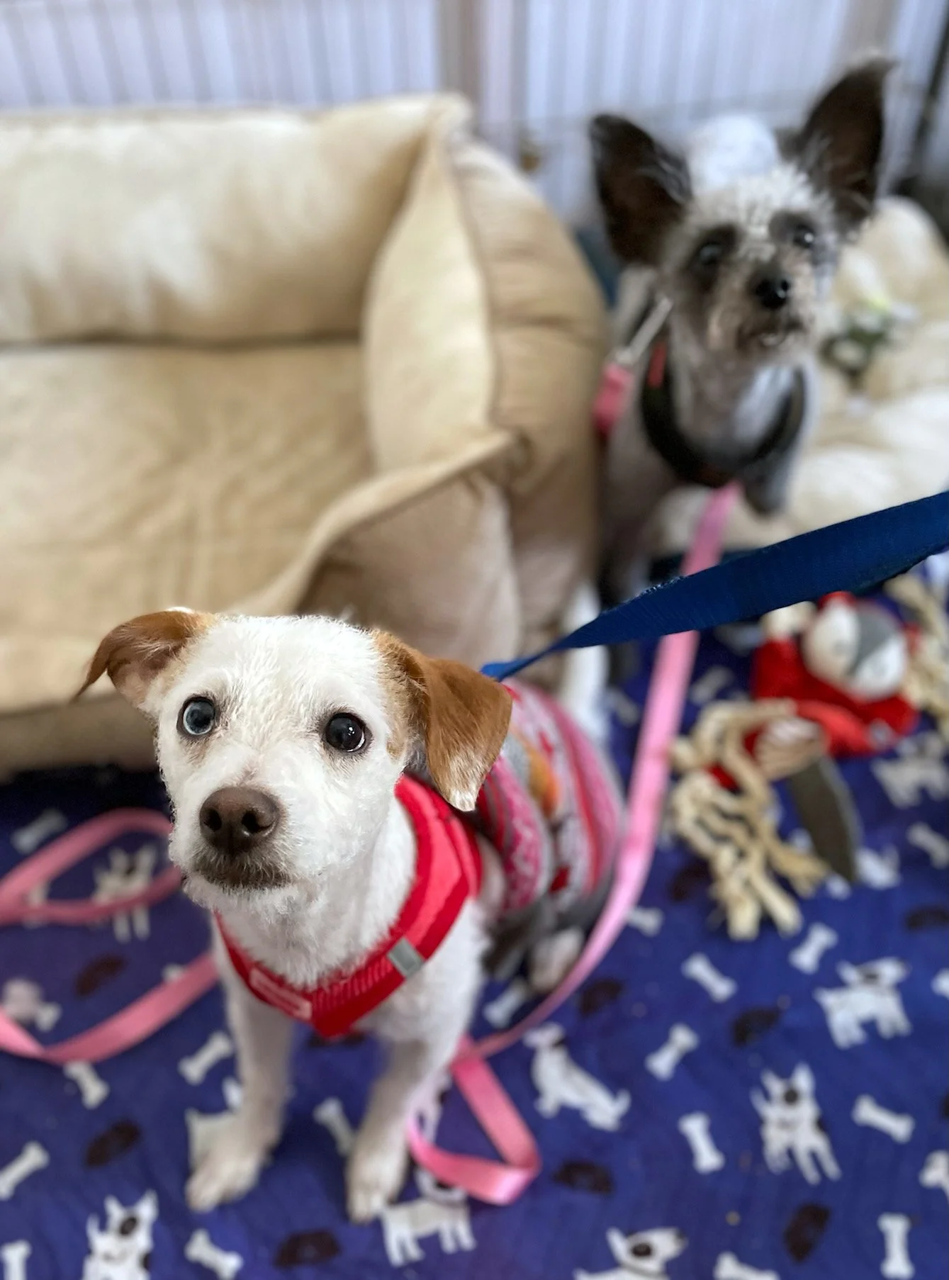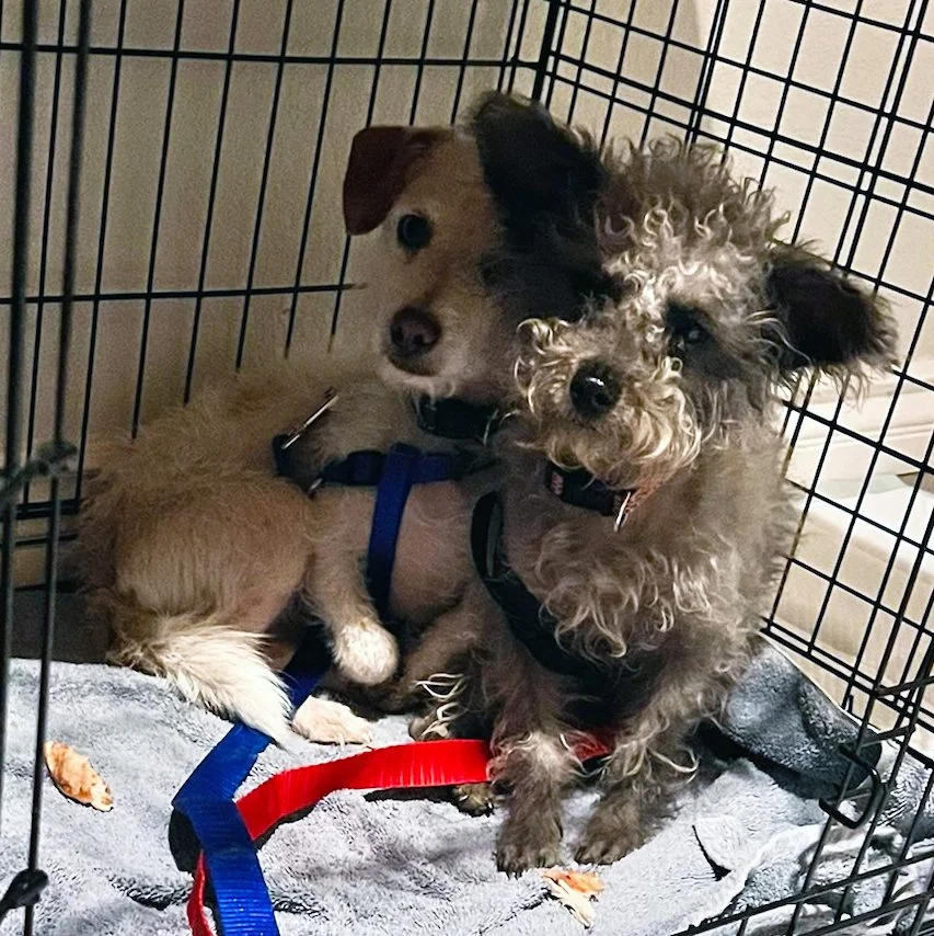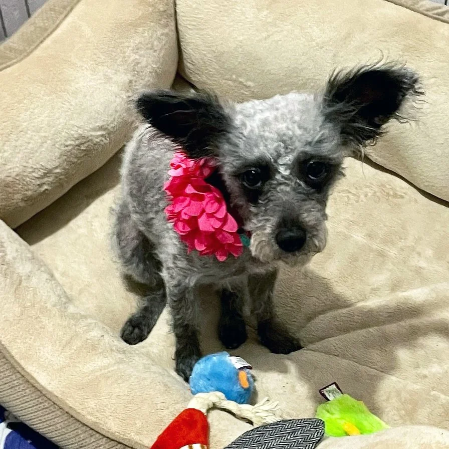Hello! My name is Pepper. My brother Salt and I came into rescue after our dad lost his home and became overwhelmed with caring for multiple dogs while living on the streets. I'm used to looking out for my siblings and my dad, so I bark a lot when meeting new people. But once I get to know you, we'll be best buds!