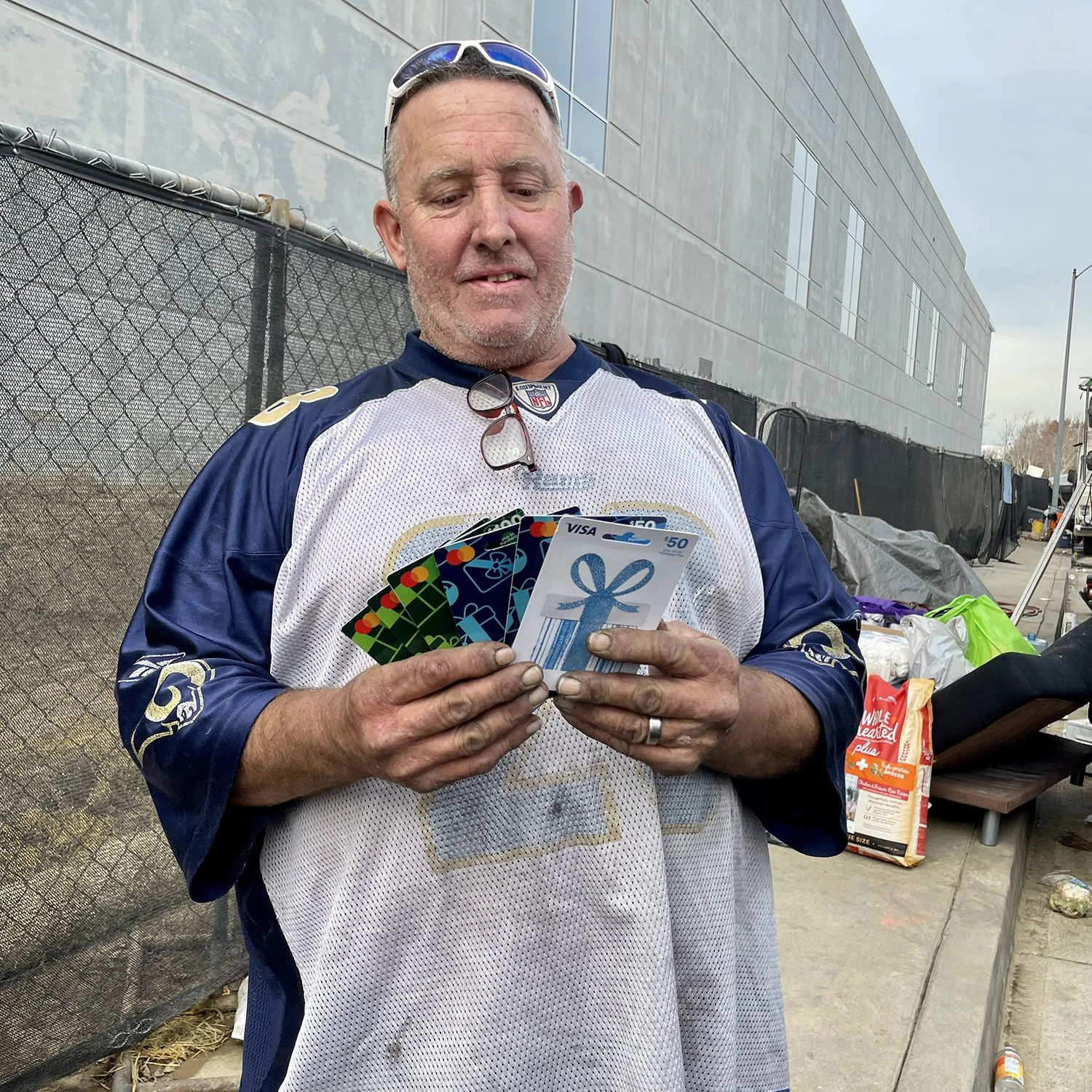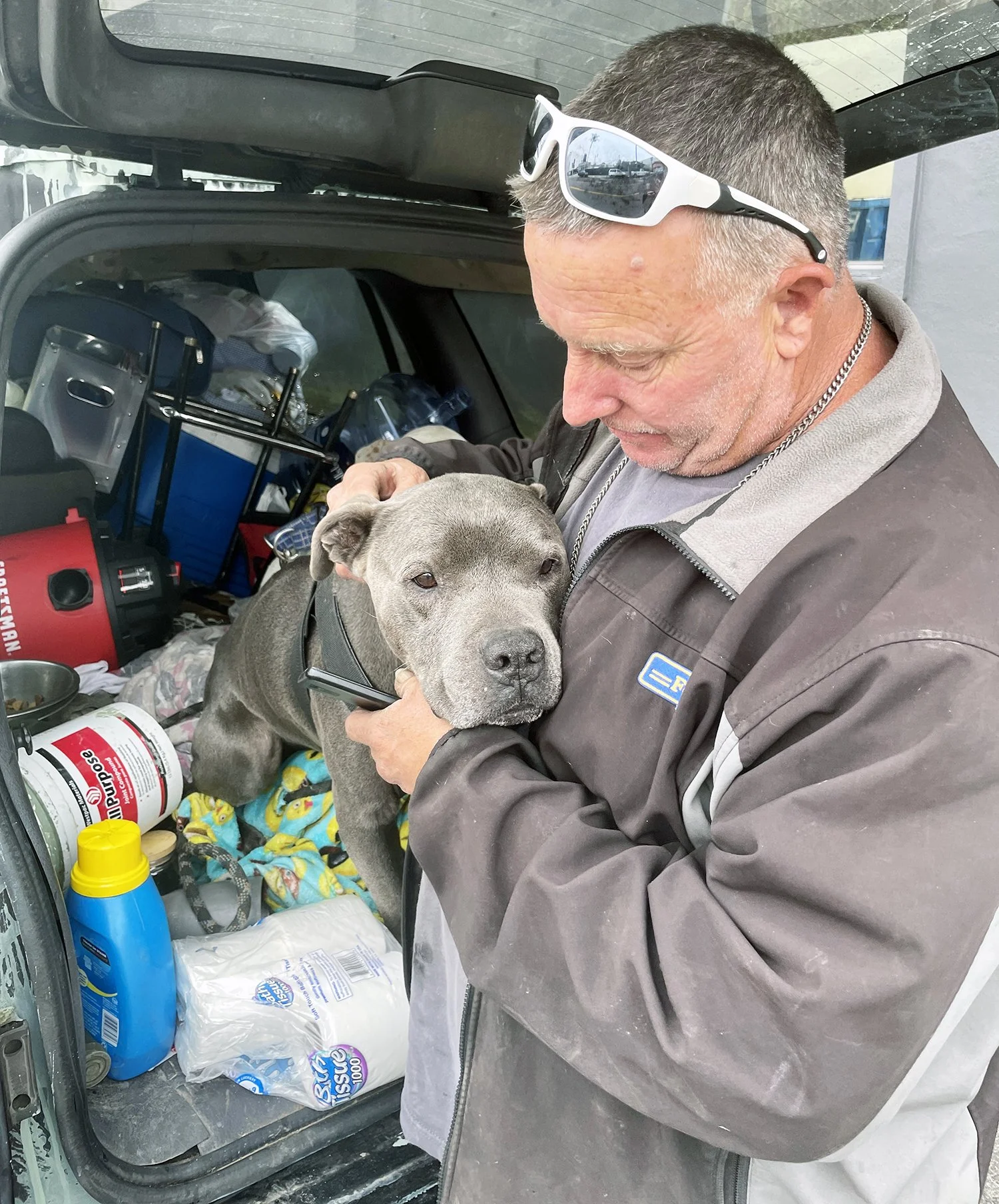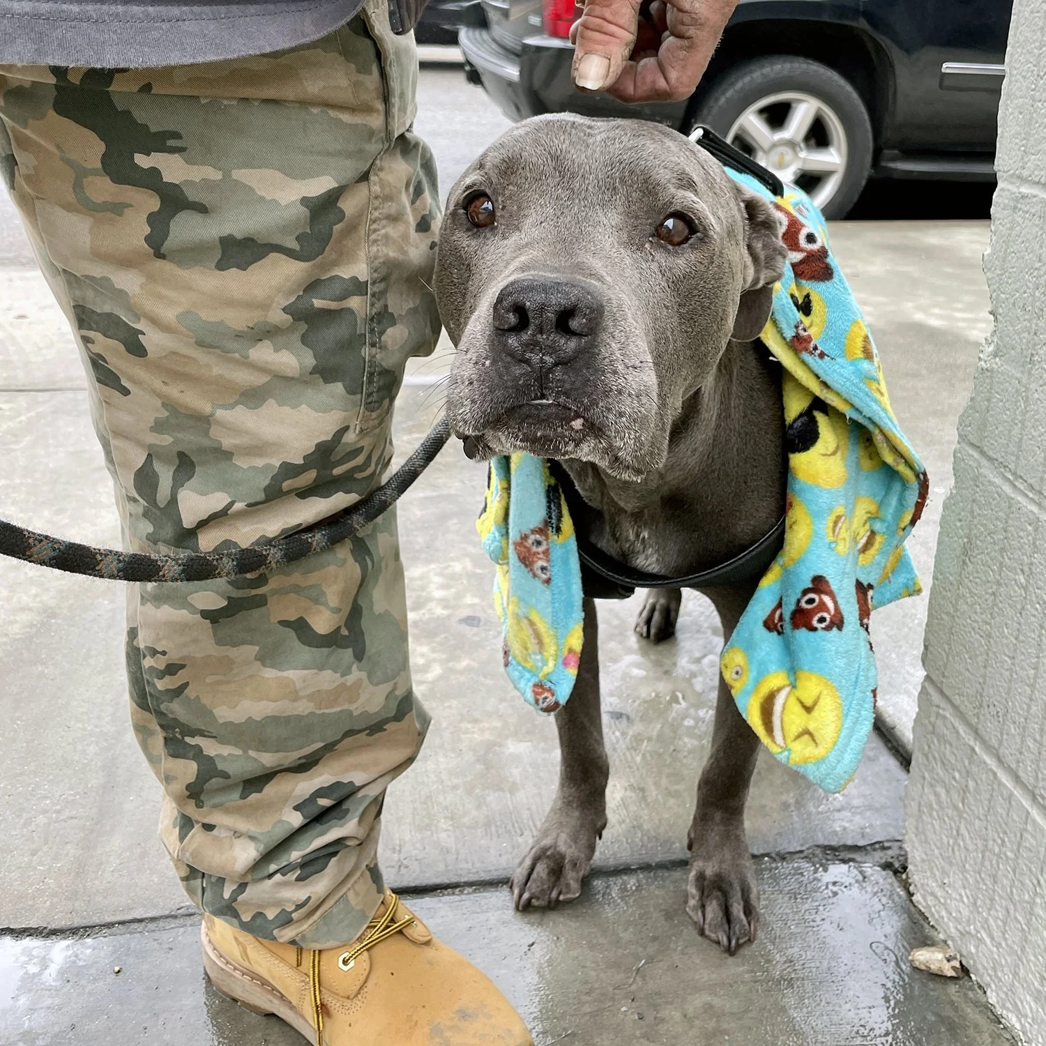 Sonny’s dad was devastated but also very grateful to everyone who stepped up to help him. Because of your donations, we were able to cover Sonny’s cremation service, and purchase gift cards that David used to buy parts to repair his car. David was incredibly moved that so many people care about him and connected so deeply with Sonny. We dropped off dog food, harnesses, leashes, dog toys, blankets, clothing, towels, and the gift cards. He wanted us to pass along how grateful he is to everyone and what a huge help it is for him and Perla to receive so many generous donations. We offered David help with getting him and Perla into housing and we are hoping he will take us up on our offer. Either way, we will support Perla with anything she needs.