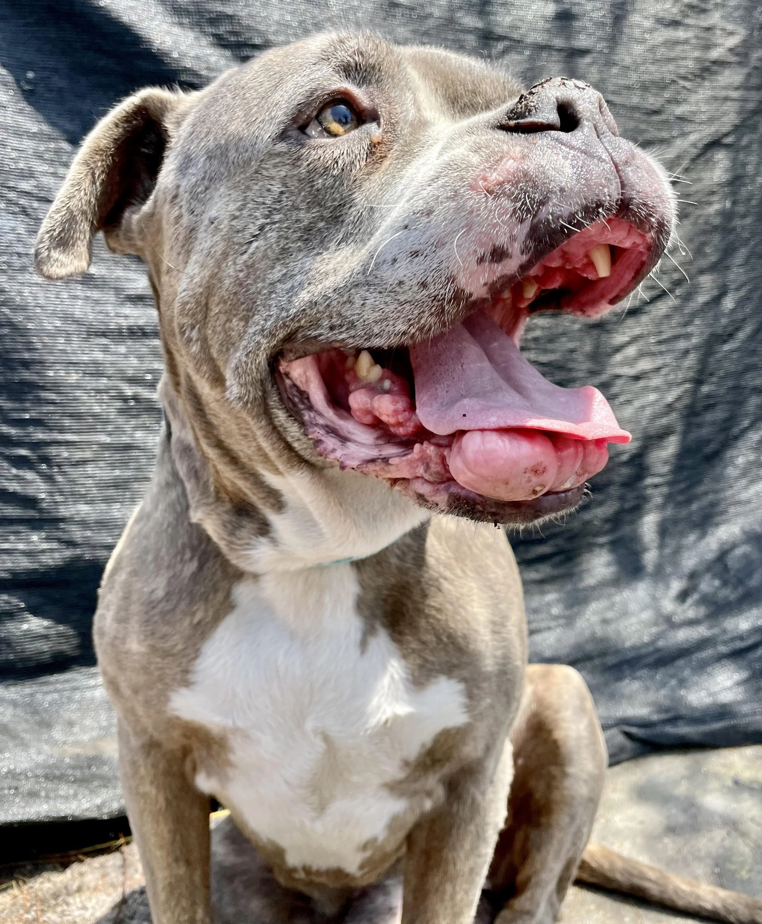 When we took in Blanquita after a life of abuse and living on the streets, we knew she was extremely traumatized and was going to be a challenge. Word on the street is that Blanquita’s first owner was a violent person that kept her chained and muzzled 24/7 and would feed her through the muzzle "when he felt like it". He abandoned her chained to a car, and she was emaciated and her spirit broken. Blanquita showed aggression towards any human that got close to her. Her natural instinct was to fight to protect herself at all costs.